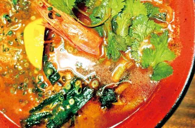 岩沼市心と体を整える「スパイス&ハーブ」の嗜み魚介の旨味と緑の海藻麺彩り豊かな一杯