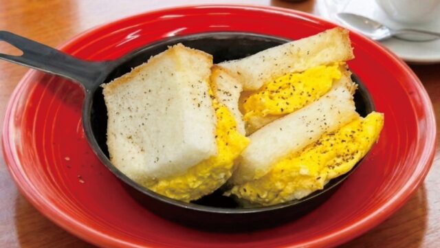 上尾市喫茶店のモーニングぷるぷる卵のだし巻きサンド。香ばしいトーストとベストマッチ