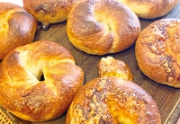 国産小麦とホシノ天然酵母使用のこだわりの パン生地に、季節の食材を合わせたベーグル(300円)。