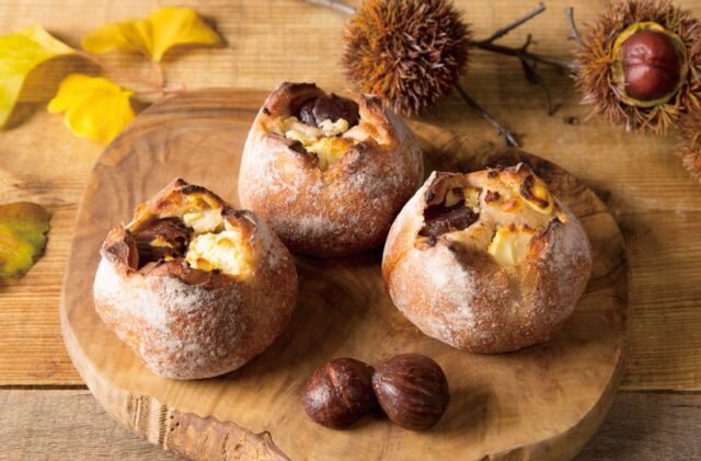横浜市磯子区旬の味覚パン旬の渋皮栗、まるごとひとつをまん丸に