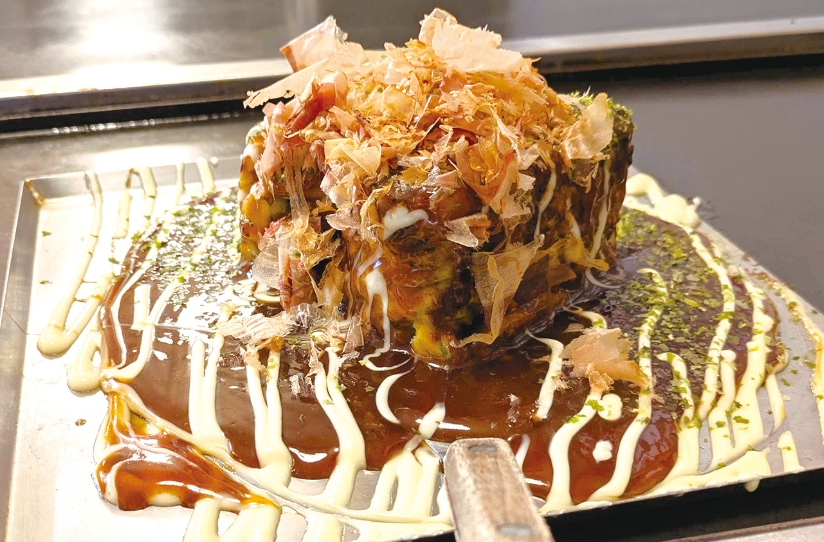 「越谷愛されグルメ」にも選ばれた、越谷ねぎをふんだんに使ったお好み焼き。野菜はねぎだけでお肉は豚肉、つなぎには米粉を使用しており、ふわふわでシャキシャキのねぎの食感を楽しめます。女性でもぺろりと食べられる一品です。